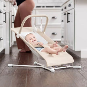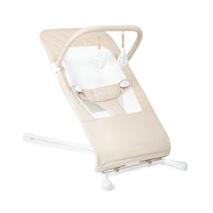 Enjoy quality time with your little one anywhere with the Highland Organic Bouncer. Tool-free assembly allows for easy set-up. The removable and machine washable seat cover is made with GOTS certified cotton fabrics. The mesh in the seat cover allows for airflow and breathability. It is also equipped with a 3-point adjustable harness for security and a detachable toy bar for fun. The steel, sturdy frame allows for natural bouncing and features a 3-position recline for baby’s comfort. The Highland folds flat for storage.