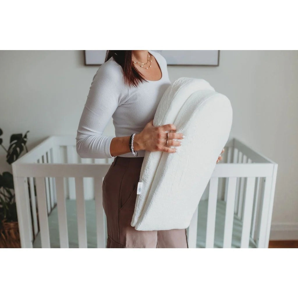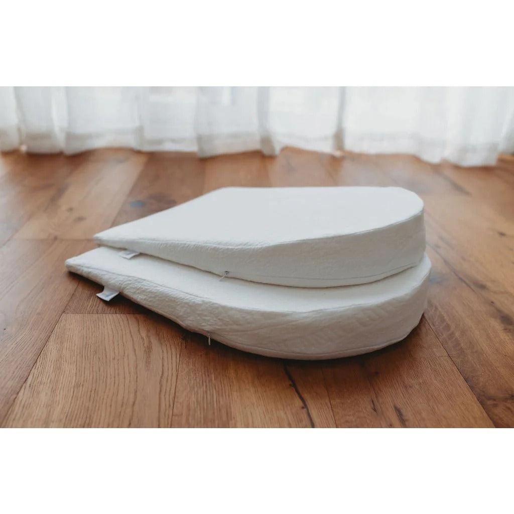 A simple, thoughtfully made under-mattress support for your bassinet. It provides a subtle ~7° lift to the mattress area and a smooth, stable surface, with organic materials you can feel good about in your nursery.