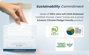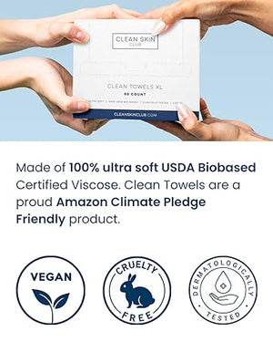 Clean Skin Club Clean Towels XL™, 100% USDA Biobased Face Towel, Disposable Face