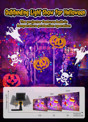 Light up Halloween, Christmas, and every celebration in between. This holiday projector light splashes walls, trees, and facades with 26 crisp effects—from 3D ocean waves to festive pattern slides—for instant, large-area ambiance. Use it outdoors or indoors, set the auto-off timer, and switch scenes in seconds for parties, yard décor, or cozy living-room movie nights.