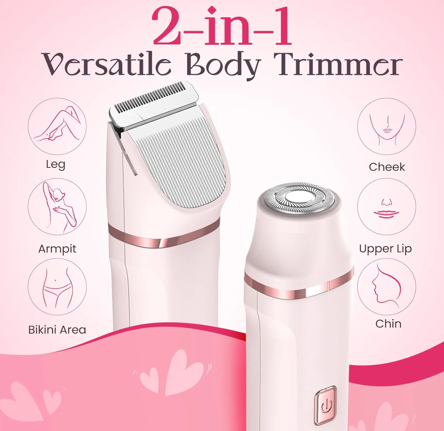 - 2-in-1 Versatility: Removes hair from face, arms, legs, armpits, and bikini area with one device.