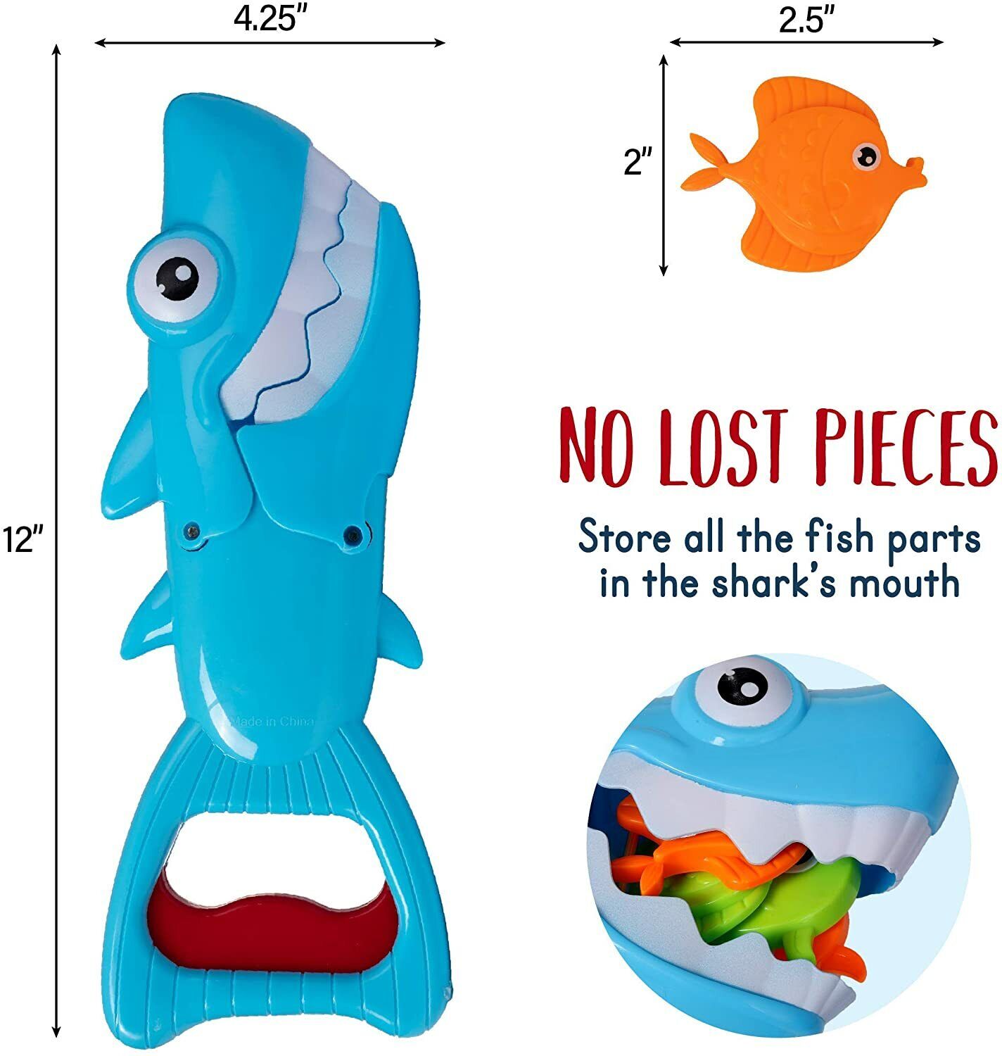 - Complete Set: The package includes the Shark Grabber toy along with four toy fish, providing a comprehensive play experience.