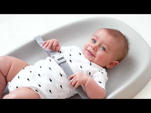 Made of wipeable foam that is soft to the touch and comfortable for baby. Base is made of ABS plastic.