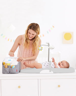 With the Skip Hop Wipe Clean Changing Pad you will not have to worry about bothersome loads of laundry after particularly messy diaper changes. This foam changing pad conveniently wipes clean, and includes a toy bar to keep your little one entertained.