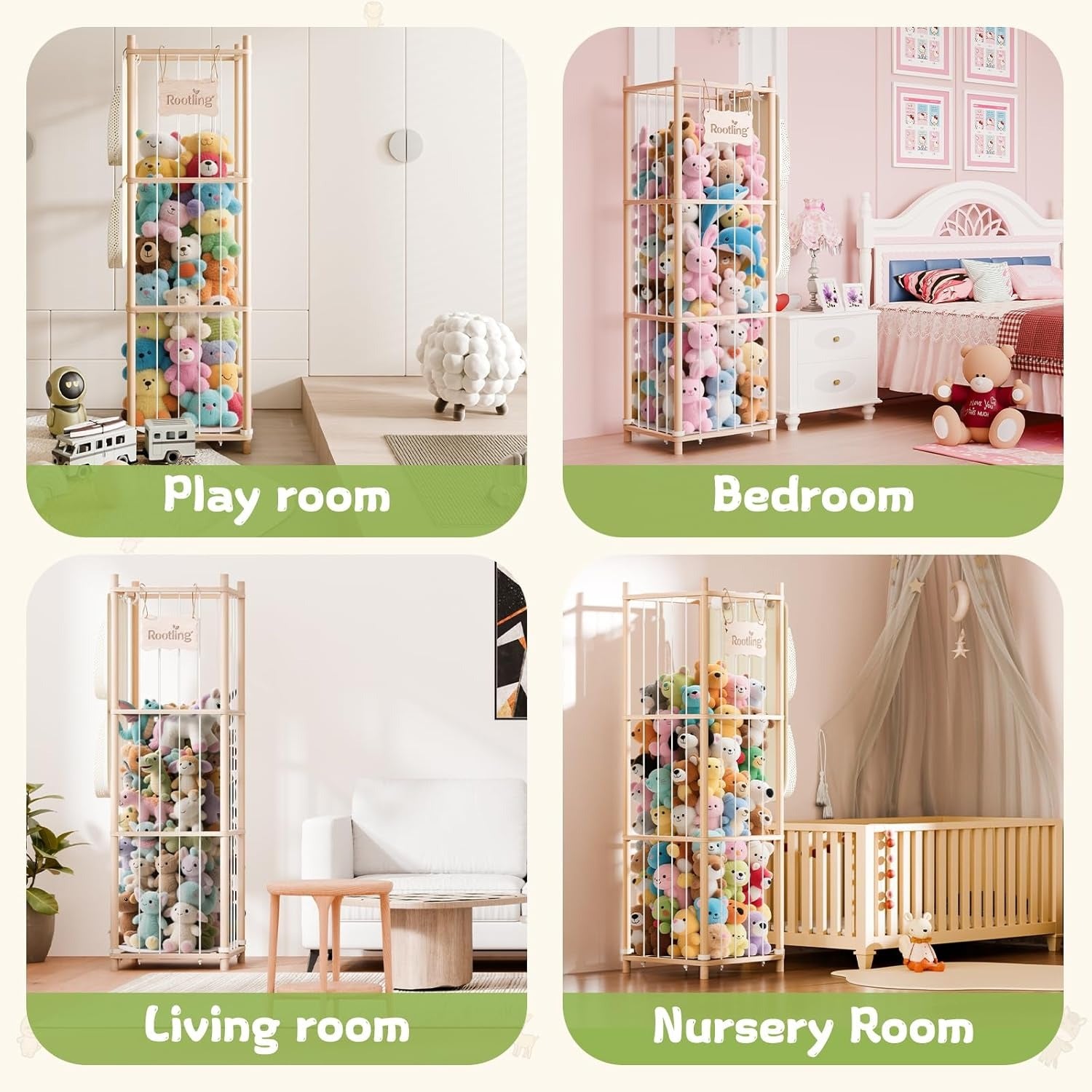 - 【Efficient Organization & Storage】:The Rootling Stuffed Animal Storage is perfect for helping your child keep their room tidy. It has plenty of room for all the stuffed toys, and the unique cage design makes it easy to reach and put the toys away. Not only does it keep the room organized, but it also fosters a sense of responsibility and teaches your child organizing skills!