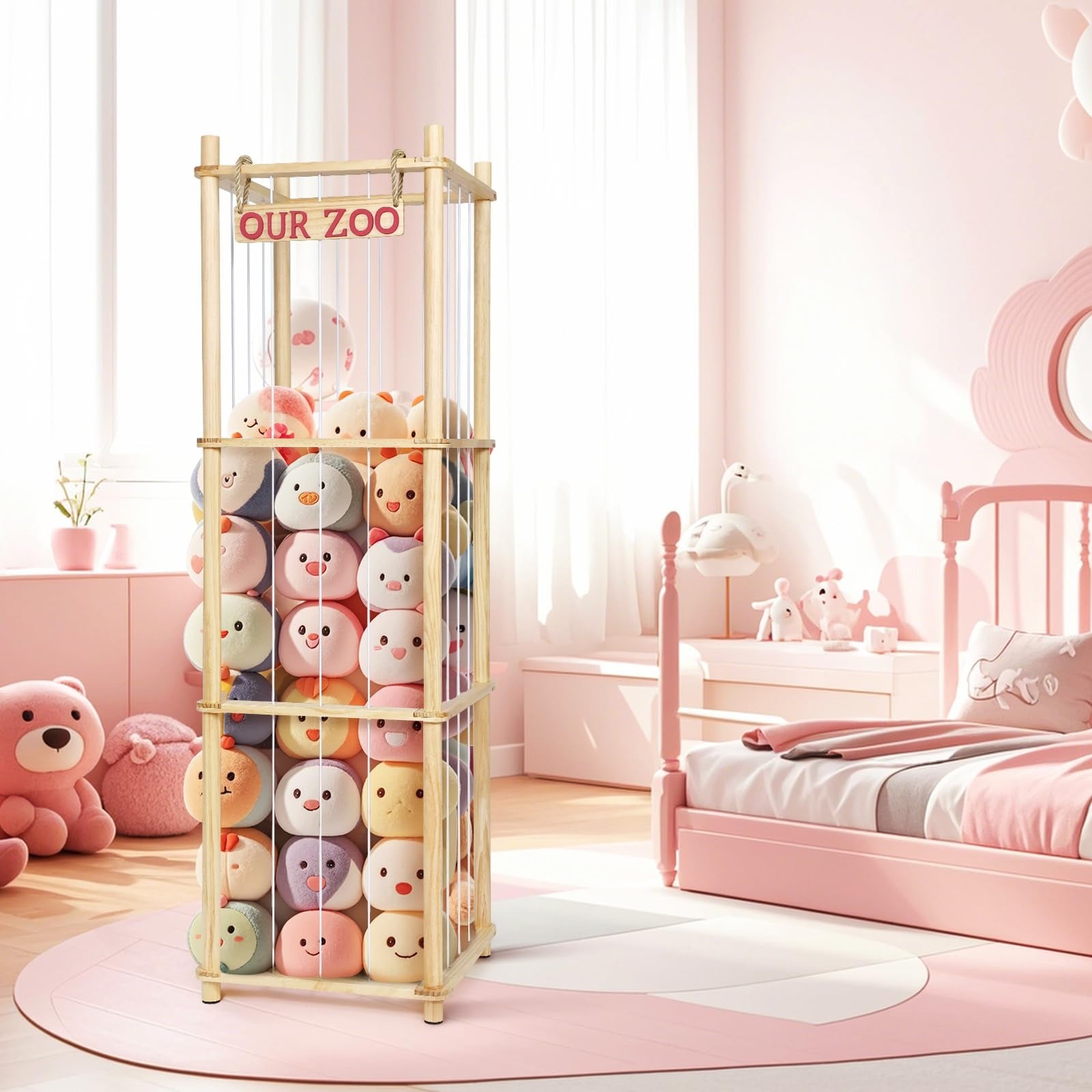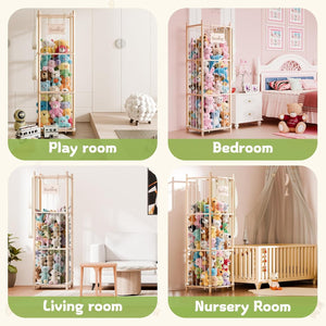 - 【Large Storage Space】:After assembly, measures 16.1”W x 16.1”D x 53.9”H (holds 40+ large plush toys). Clever tiered design maximizes vertical space for bears, dragons, or even small blankets—keeping even the bulkiest toys neatly contained.